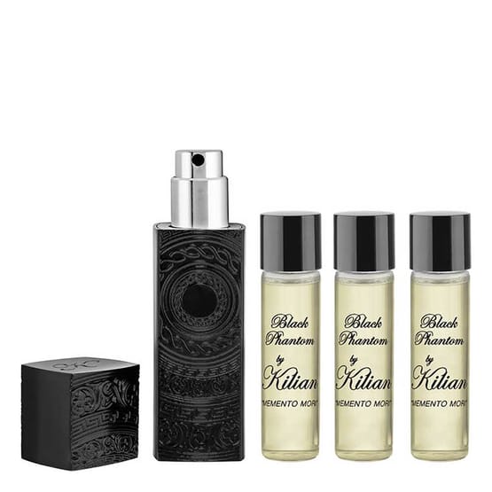 With the Black Phantom Travelset from KILIAN PARIS you always have your favorite perfume with you. Black Phantom is an intoxicating perfume with notes of sandalwood, strong coffee and Caribbean rum. The aromatic bitterness of coffee is enhanced by an earthy warmth of Javanese vetiver. The intoxicating sweetness of rum is reflected by the delicious smell of sugar cane mixed with dark scented and creamy sandalwood as a base. The result is a pure, voluptuous sensuality made for true lovers of life. The travel set contains 4 vials of 7.5 ml.