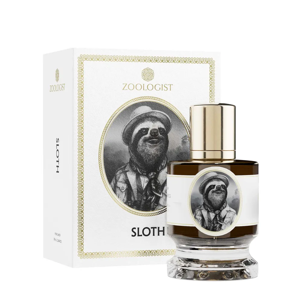 Zoologist Sloth Extrait de Parfum is a unisex fougère perfume. Created by the perfumer Prin Lomros, Sloth Extrait de Parfum evokes this scenario: with its vibrant, sun-dappled hues, the dense rainforest beckons invitingly. Yet within its misty depths, countless dangers lurk, slinking across the forest floor. Dangling high among the treetops may seem a dubious defence against peril, but for leisurely sloths the forest canopy offers a protective shroud. Safe in their leafy fortress, the sluggish creatures move so slowly even moss overtakes them. They snooze in a cradle of moist green aromas, oblivious to the chaos below. Zoologist Sloth captures the tranquility of this sleepy beast in a soothing green essence. Calming lavender, chamomile, marigold and jasmine combine with the stillness of bittersweet hay and damp moss, stitched together by threads of luscious incense. The result is dreamy and exotic. As it settles on the skin, Sloth carries one up to a place where stresses simply tumble away.