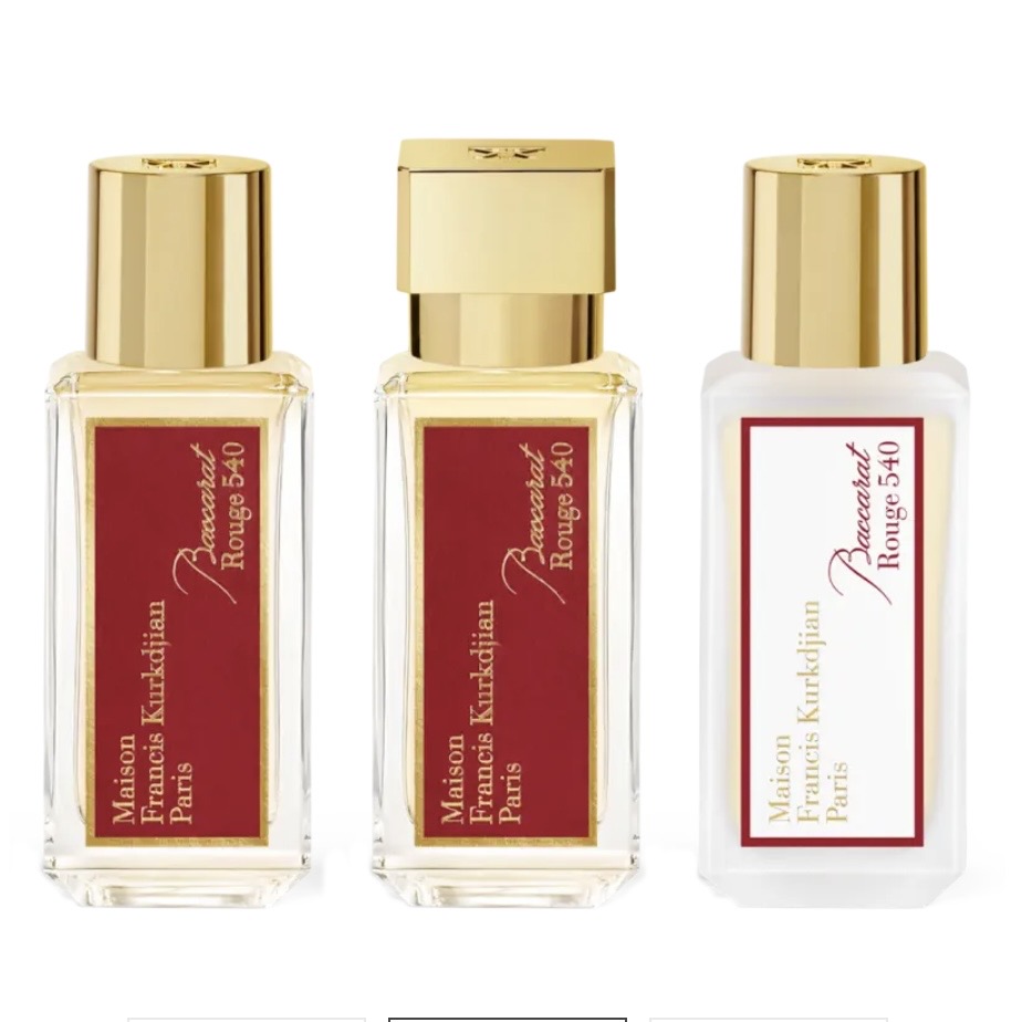 Baccarat Rouge 540 was born from the meeting between Maison Francis Kurkdjian and the legendary Baccarat crystal manufacturer, in homage to the 250th anniversary of this crystal institution, inspired by the magic of the alchemy of blowing: air, mineral, fire; Francis Kurkdjian envisioned a fragrance that is both luminous and mysterious, where transparency meets density, with the spicy notes of saffron intertwining with the airy accents of jasmine, creating a mischievous elegance that settles on the skin like a floral and gourmand breath; Baccarat Rouge 540 embodies a unique olfactory signature, both ethereal and sensual, with its inimitable trail, like a veil of light, adorning the skin with a sophisticated radiance and leaving behind a magnetic imprint, both captivating and unforgettable.