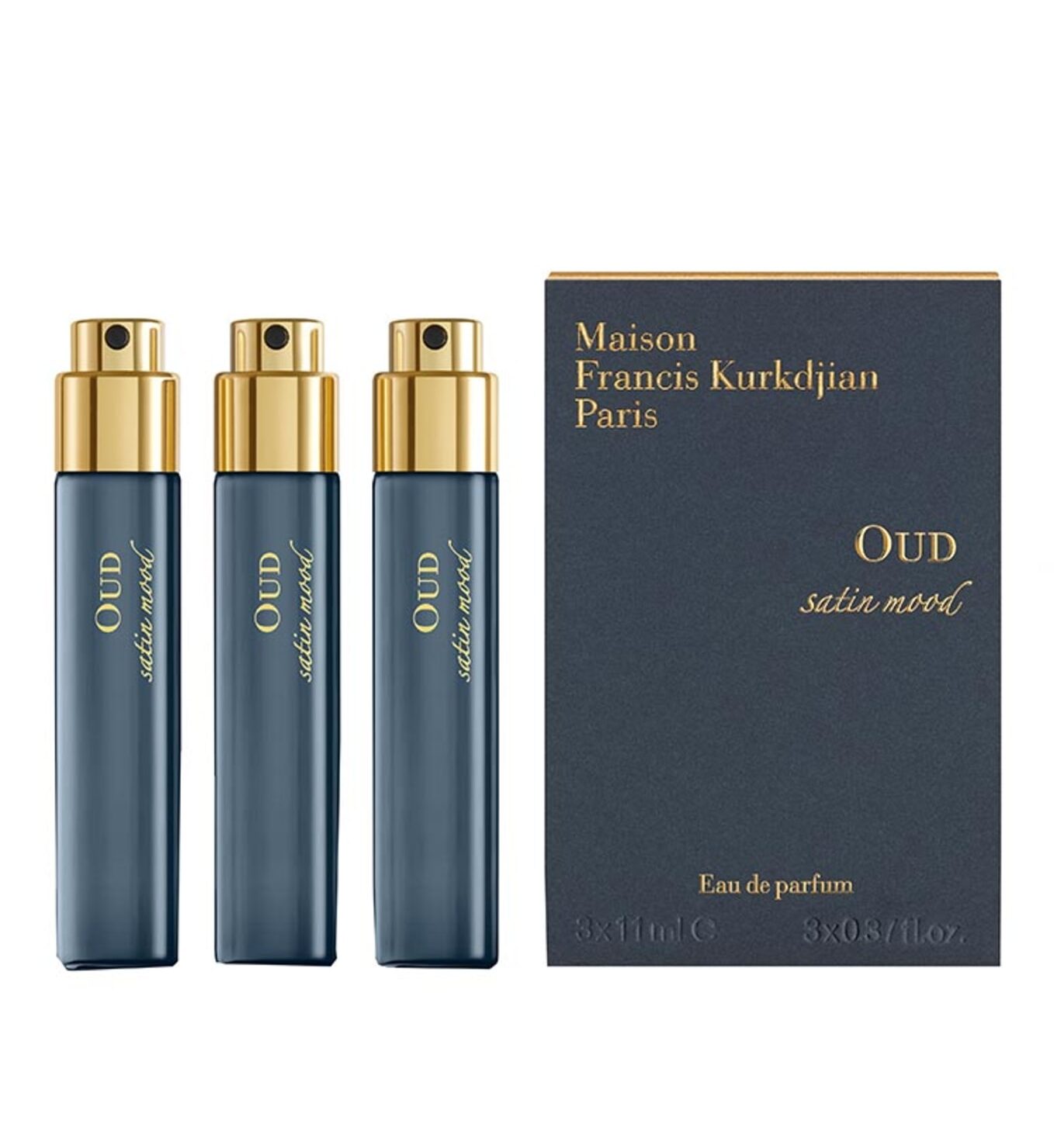 Three refills of 11ml of the scent Old Satin Mood. This eau de parfum brings to life a glittering amber-like fragrance and is inspired by Old wood, a natural material that is among the rarest and most precious essences of the perfume world. With the eyes closed, it feels like satin is sliding over a bare skin, lightly touched by an intense and brilliant sunlight. Transported by the finesse of a violet chord, the Old wood curls around the rosenessence and the rose absolute. This whole is softened by the rich vanilla-scenting amber.