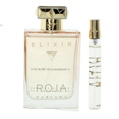 Set Includes: Roja Parfums Elixir Pour Femme Essence Perfumed Water, 100 ml _ Miniature – Roja Parfums Elixir Pour Femme Essence, 7.5 ml.